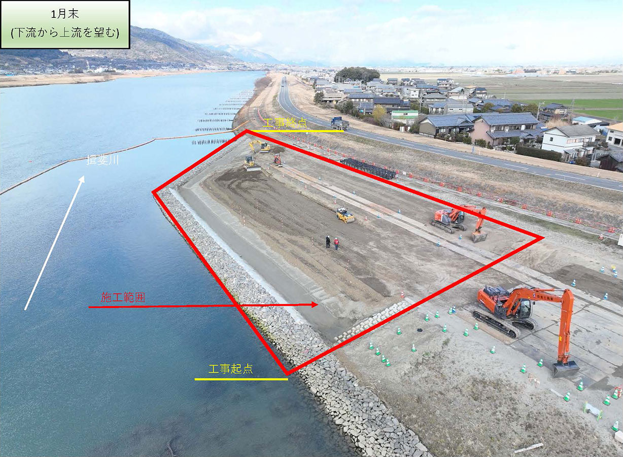 1月は引き続き根固め工の施工と中旬より盛土を施工してまいります。