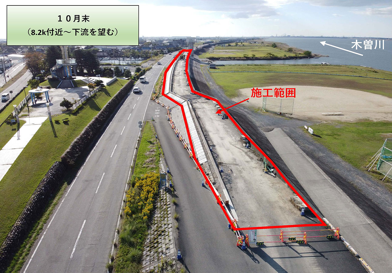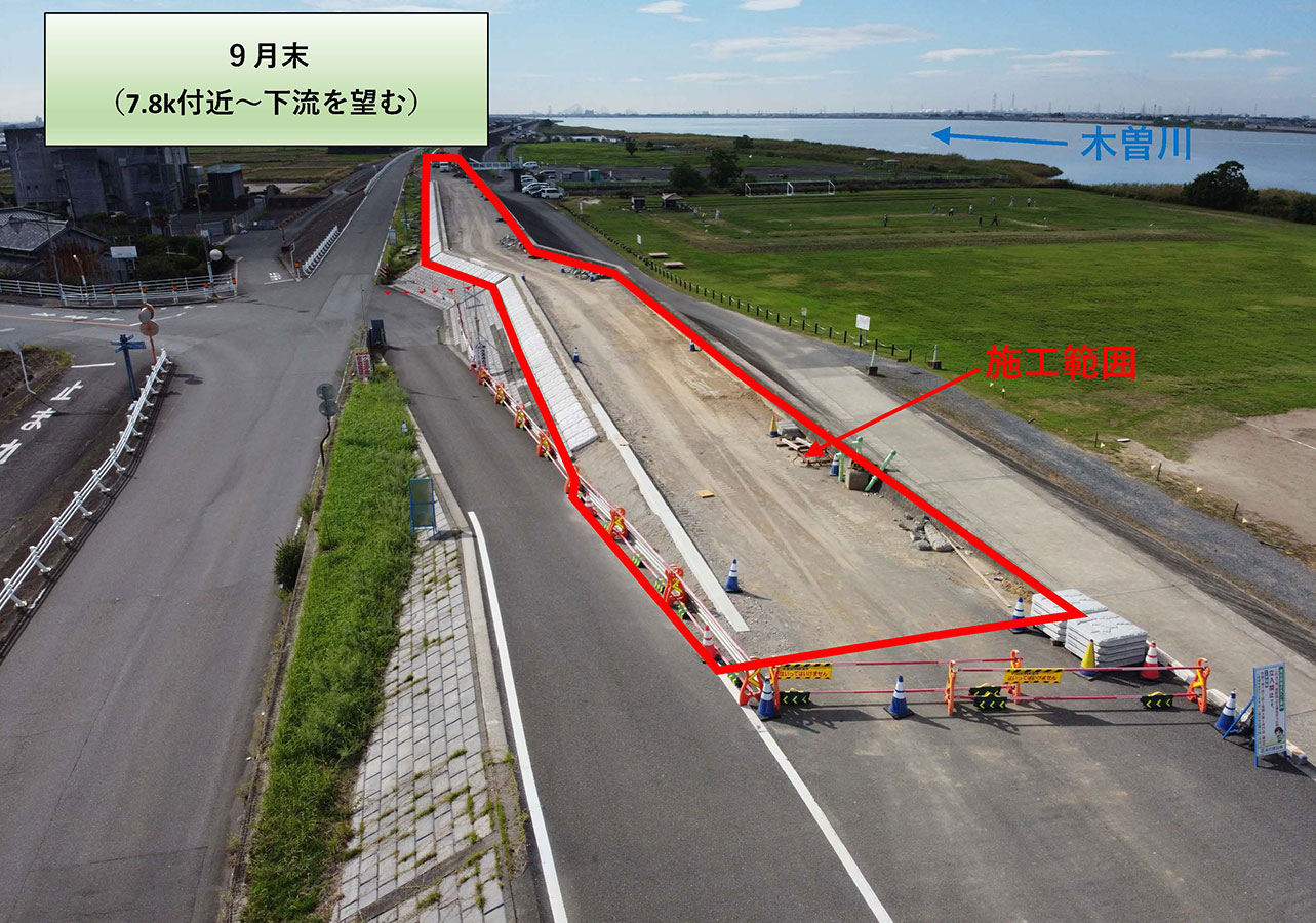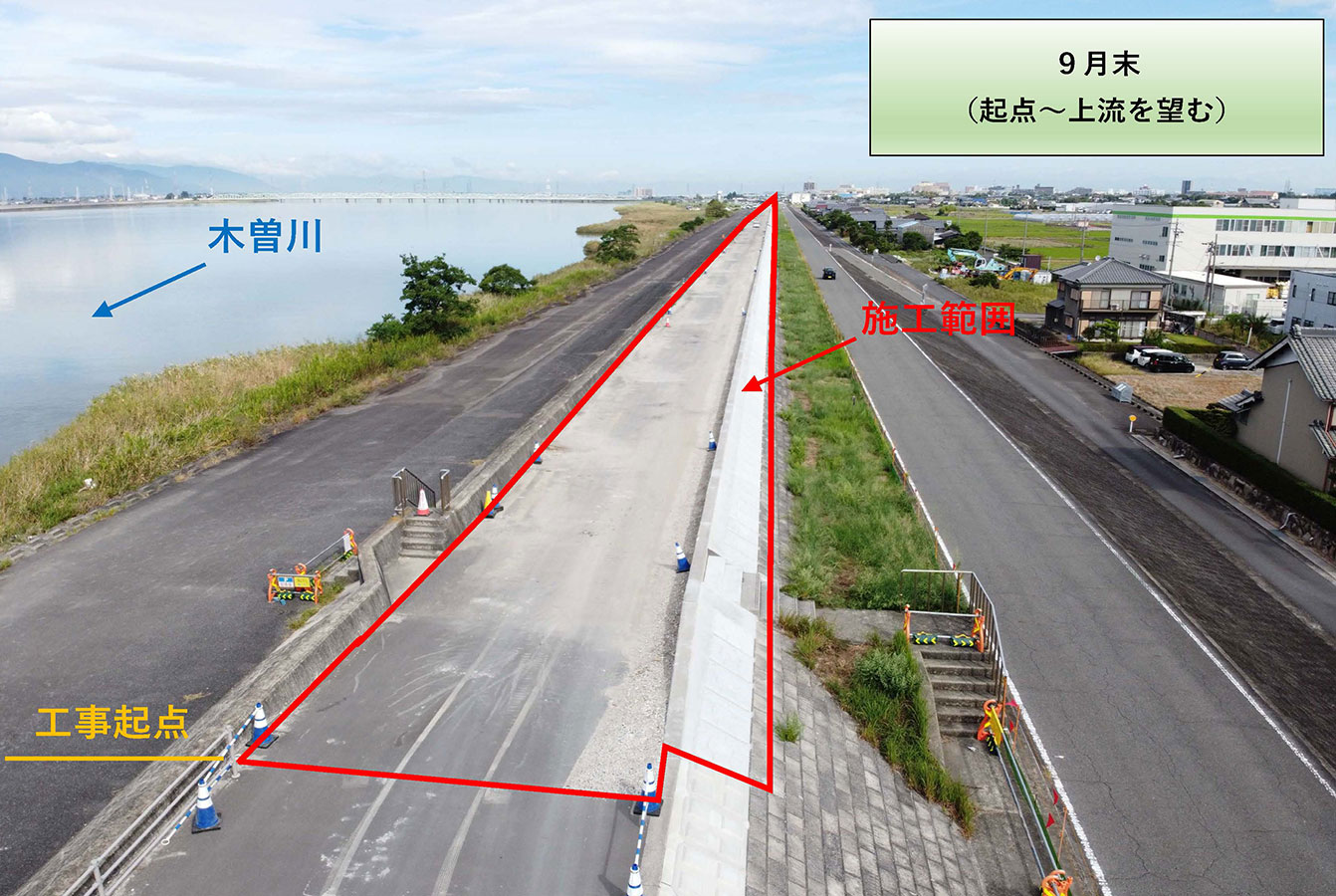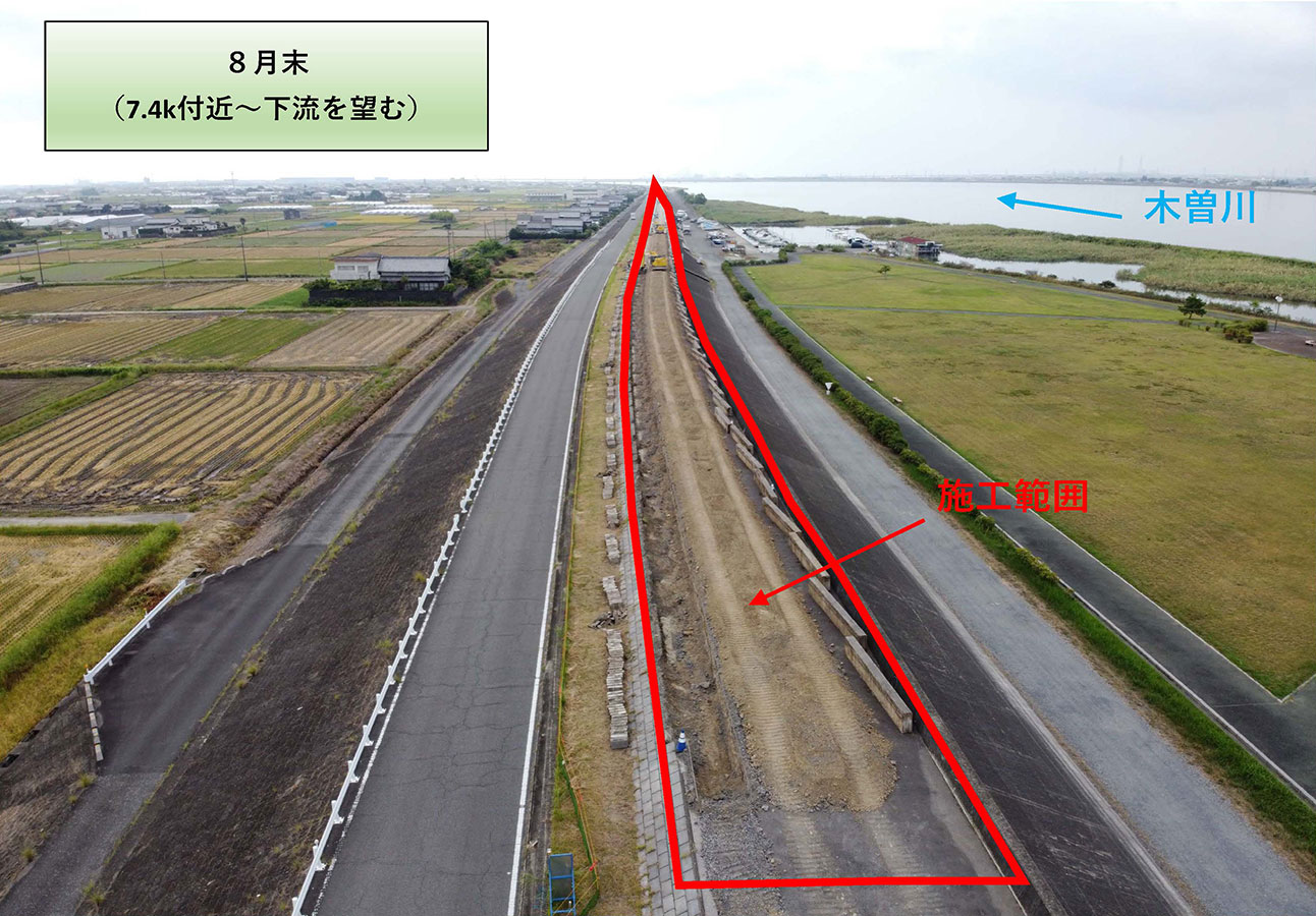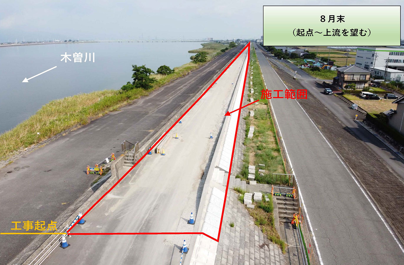 また、9月中旬より工事終点側(尾張大橋)からの施工を行う予定をしております。